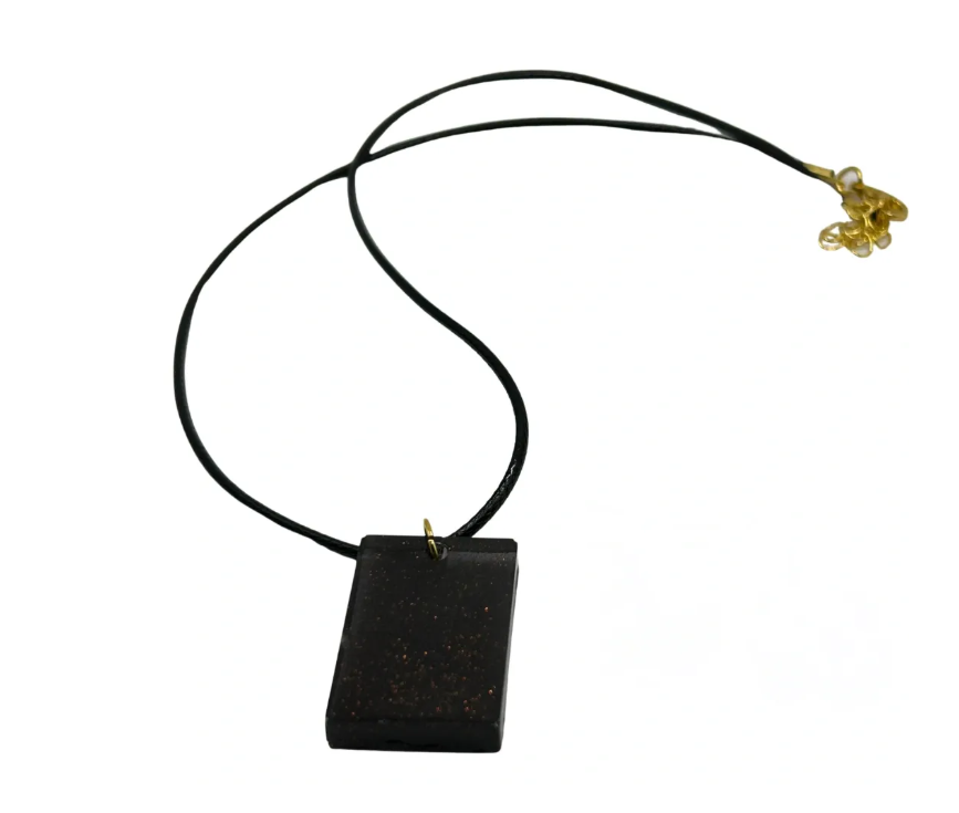 Wrap yourself in cozy elegance with the Mocha Swirl Pendant—a smooth rectangular charm in rich coffee-brown resin with a subtle sparkle, like your favorite mocha kissed by candlelight. Suspended from a sleek black cord with golden accents, this piece is the perfect blend of minimalism and warmth. Pair it with the matching Mocha Swirl Earrings for a look that’s grounded, glowing, and ready to charm.