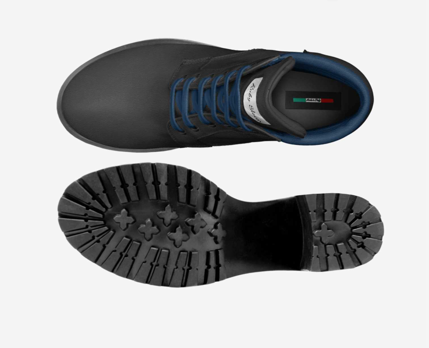 Step boldly into any season with the Ruby Boot — a masterful blend of rugged durability and high-fashion flair. Handcrafted in Italy from premium black leather, this boot commands attention with its sleek silhouette, deep navy padded collar, and matching laces for a touch of refined edge. The chunky high heel and lug sole offer both commanding height and confident traction, making it perfect for city streets or countryside escapes. Finished with the signature Ruby Sloan label, this boot is more than footwear — it’s a statement of strength, style, and sophistication.